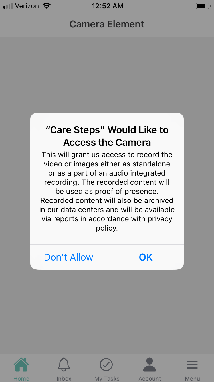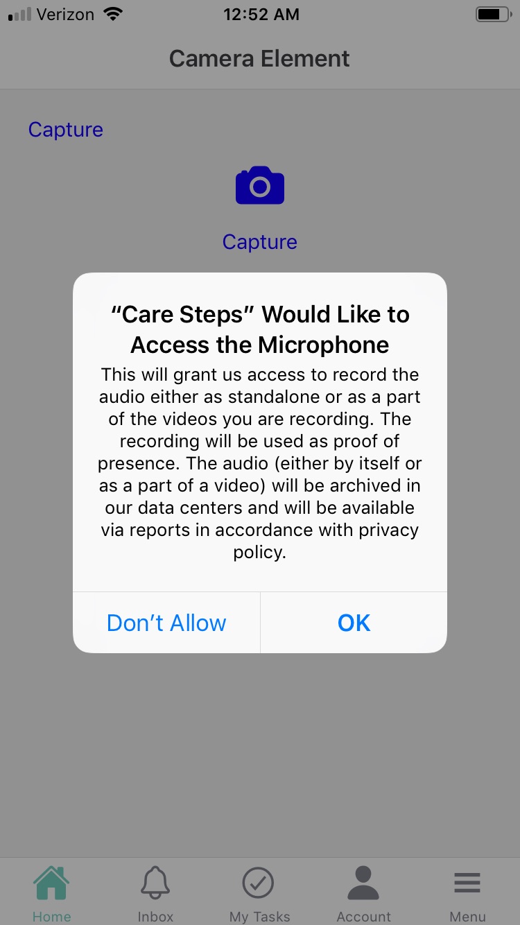 When the app is opened, the user is presented with two requests: one for access to the camera and the second for the microphone.