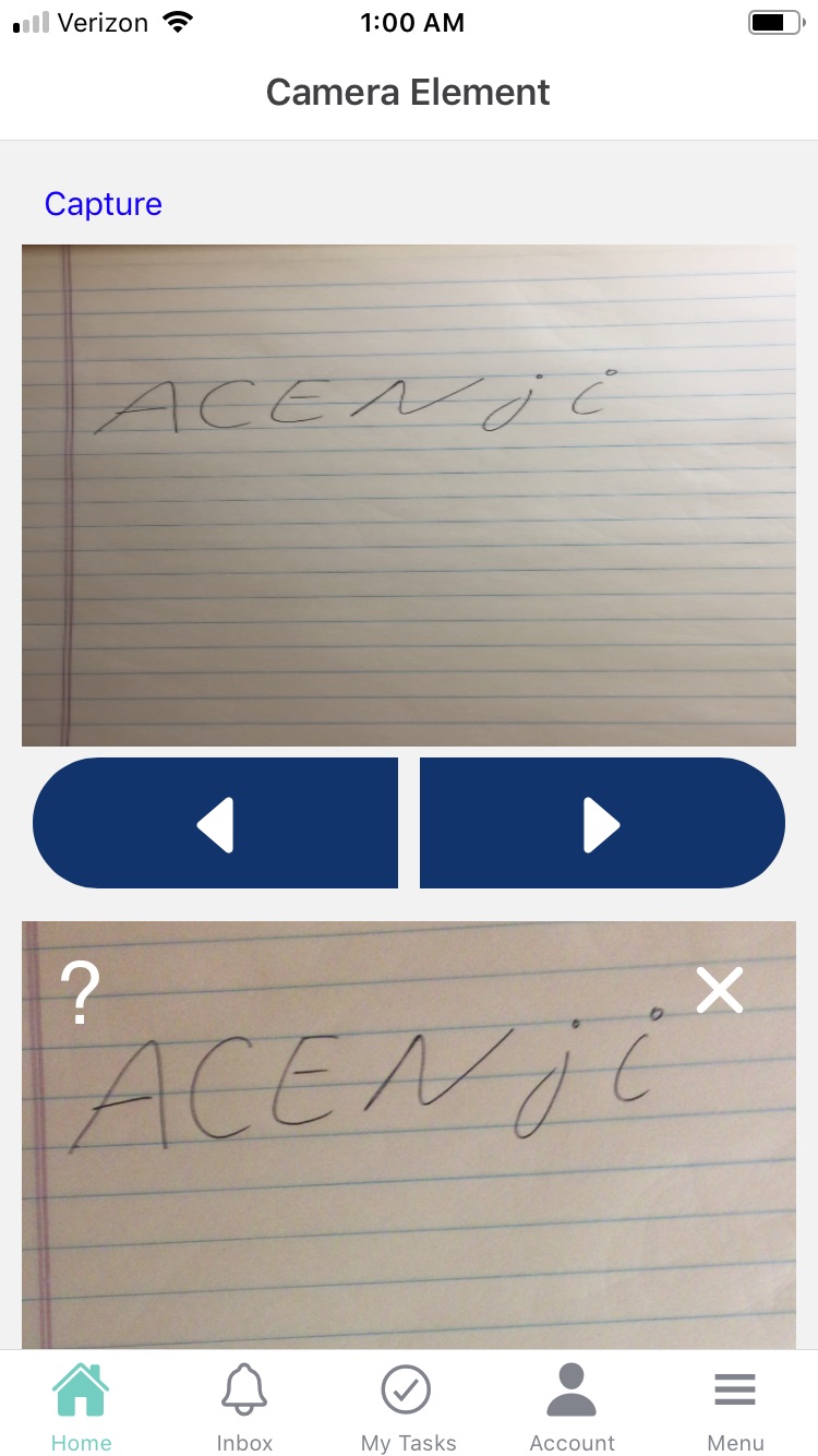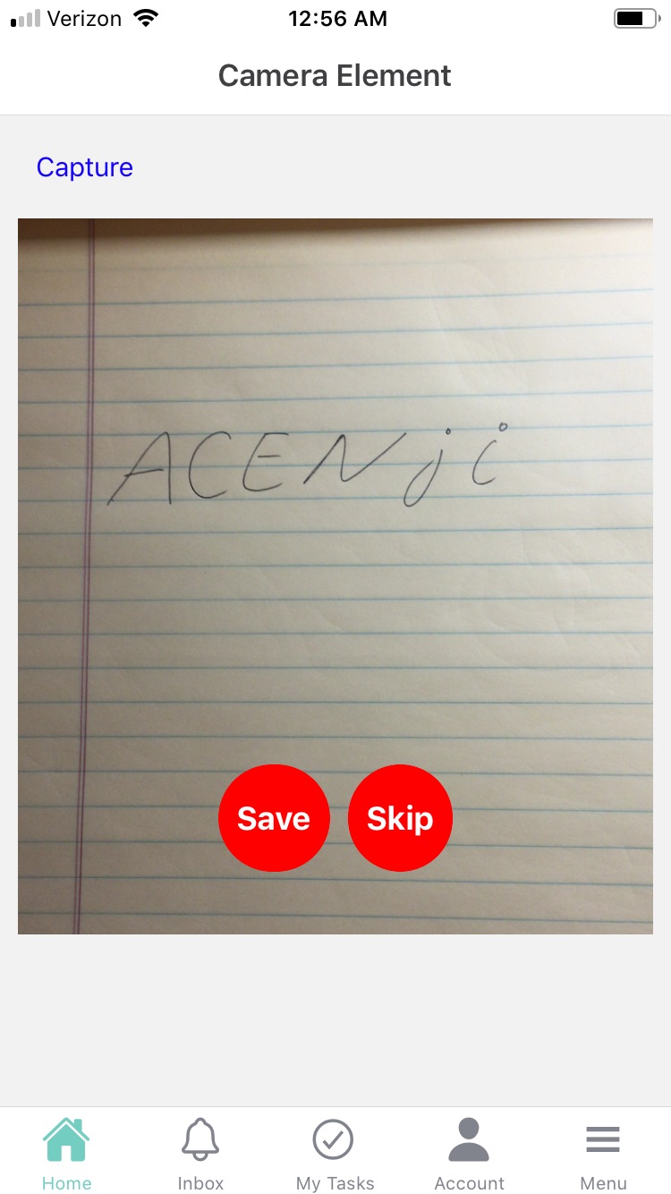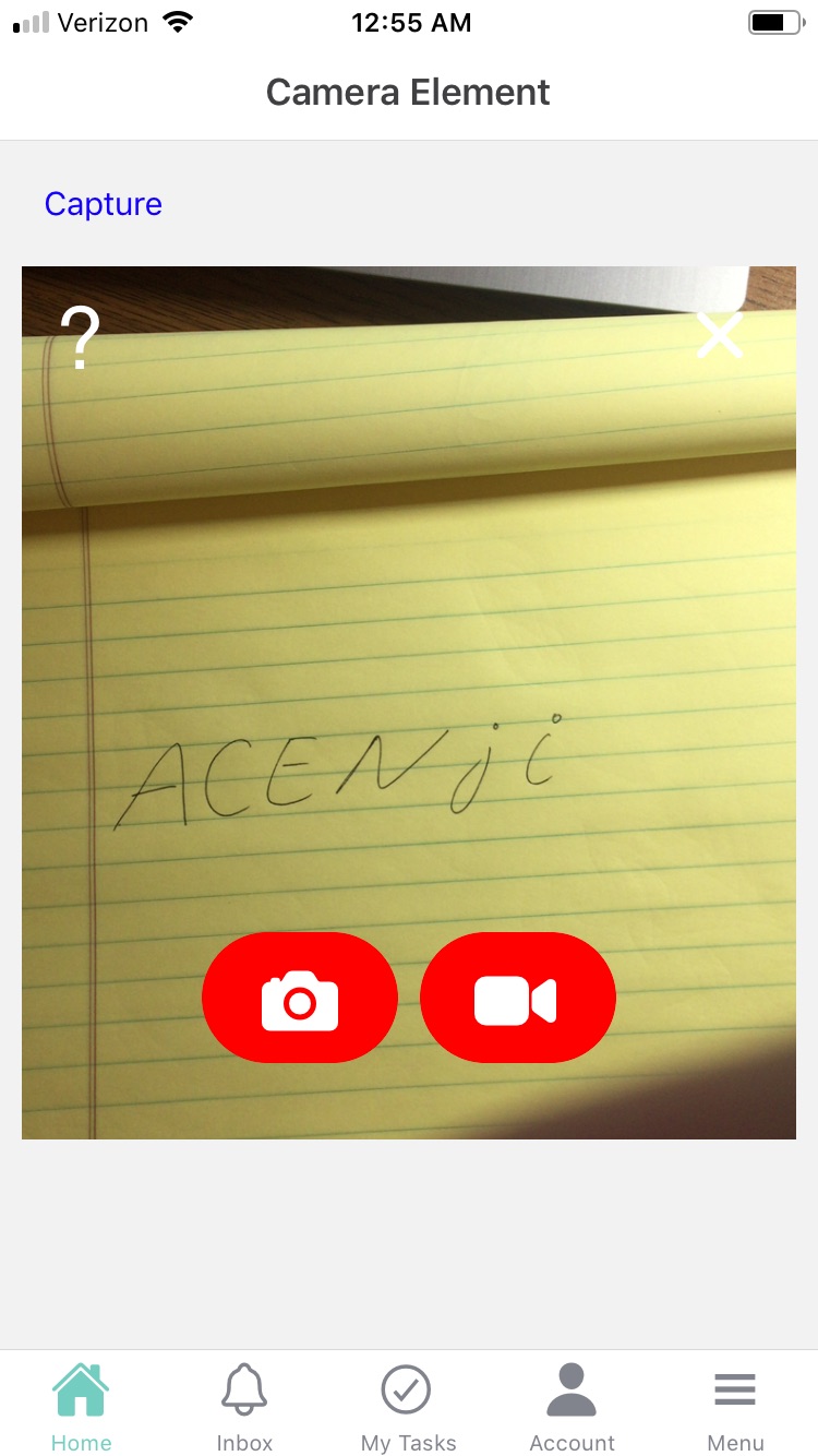 The camera element is used to allow users to capture visual data using their device's camera. Camera elements can be used for both Forms and Cards. Users can take multiple images or short videos. The element is designed to accommodate a variety of device types and camera resolutions and any specific device requirements are clearly communicated. You can also add options to customize the appearance of the element, such as changing the size or color of the camera viewfinder.