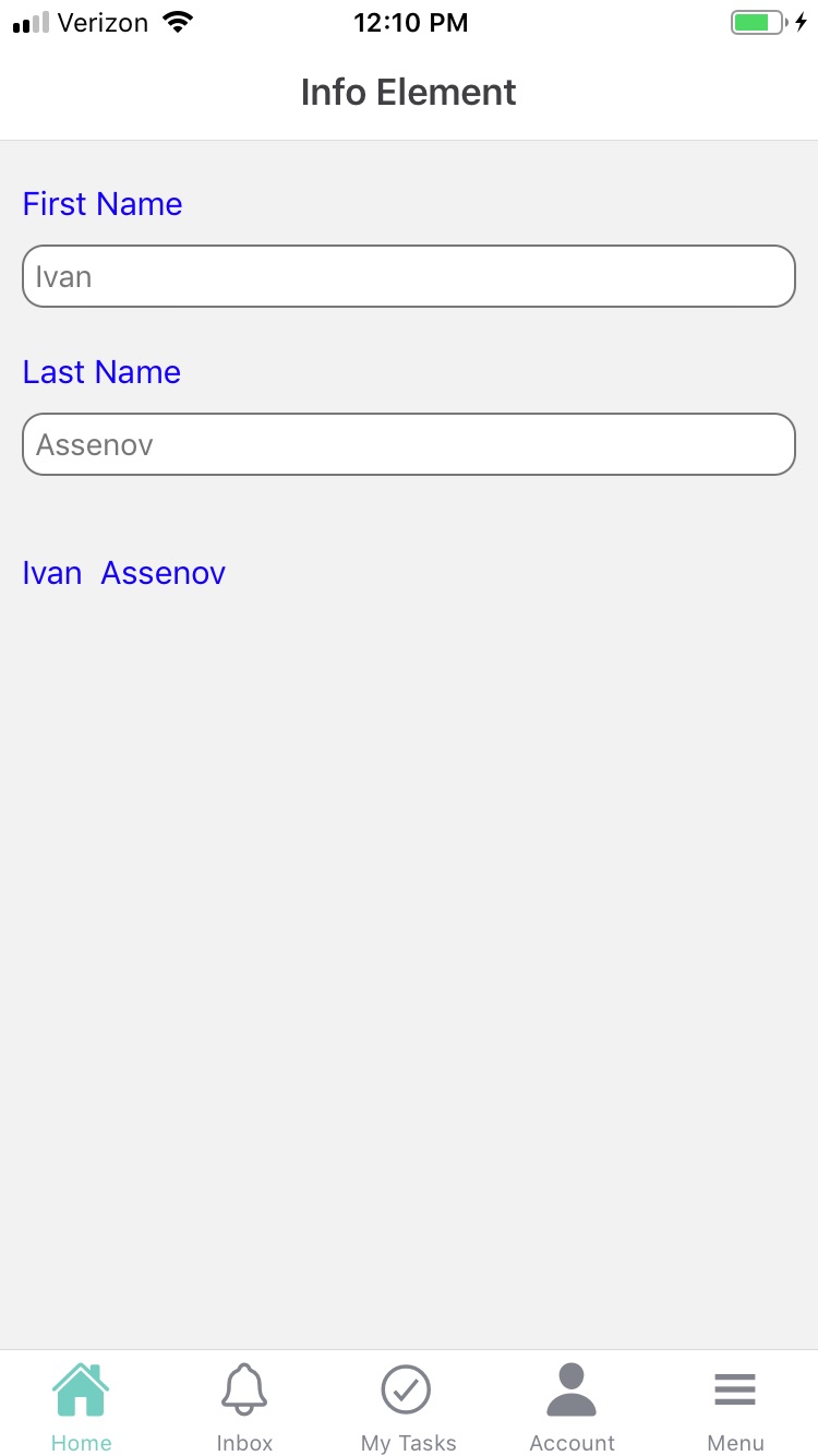 The idea here is to combine complex calculations using input information from the same or other cards. For example, let's add two text fields on the same card for simplicity: First Name and Last Name. The end result will be to display both names together inside the info element using the calculated field set up.